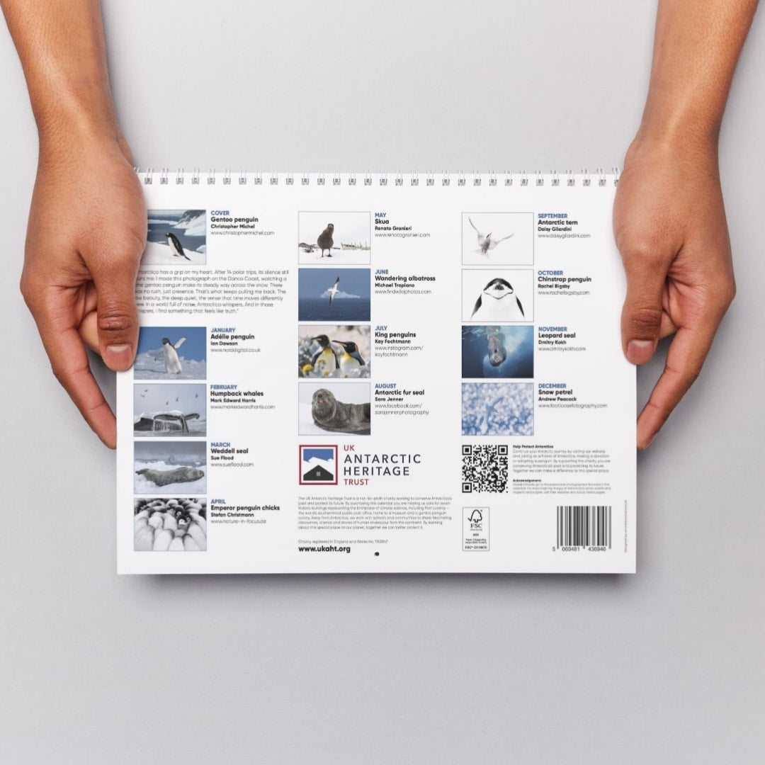 Our 2026 calendar is more than a collection of striking photographs: it is an invitation to pause, marvel, and be moved to protect the wild heart of the Antarctic for generations to come. By purchasing this calendar, you are helping us conserve historic buildings and artefacts and protect Antarctica's unique natural environment and wildlife through our penguin monitoring.